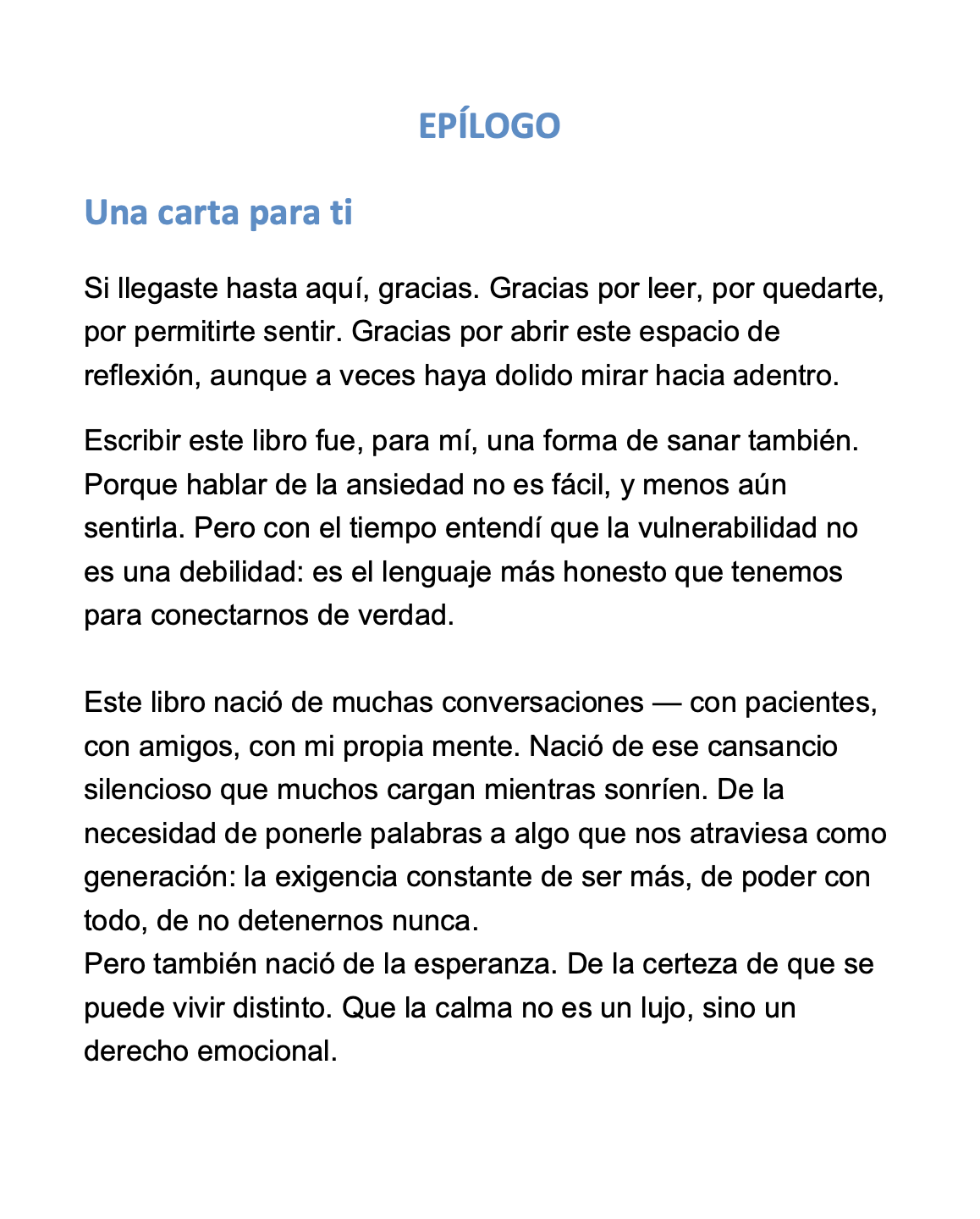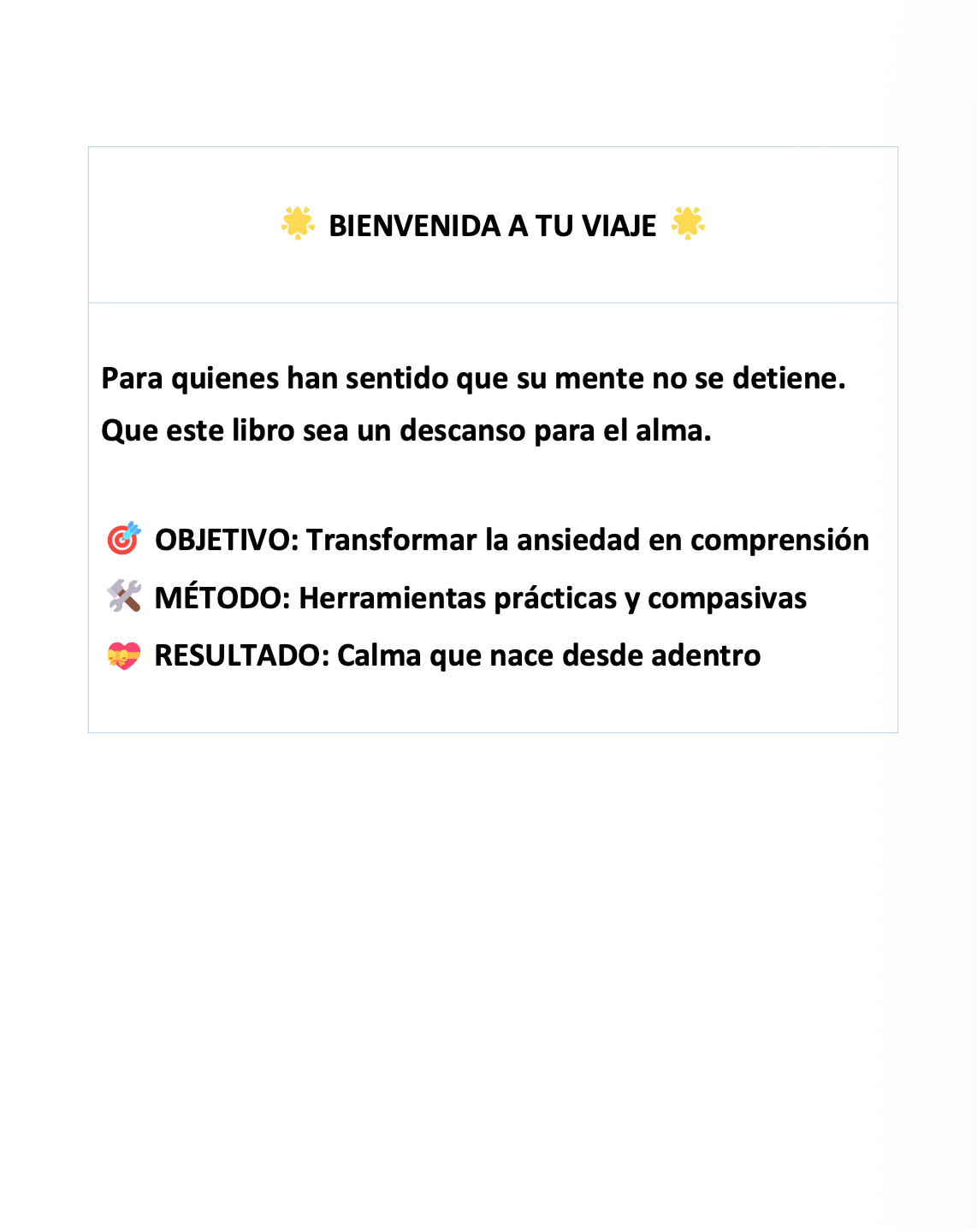 ¿Tu mente no se apaga aunque quieras descansar?¿Te despiertas con preocupación, te cuesta concentrarte o sientes que no te desconectas nunca? Este manual es para ti.“Cuando la Cabeza No Para” te acompaña con herramientas reales para disminuir el ruido mental y recuperar sensación de calma y control.